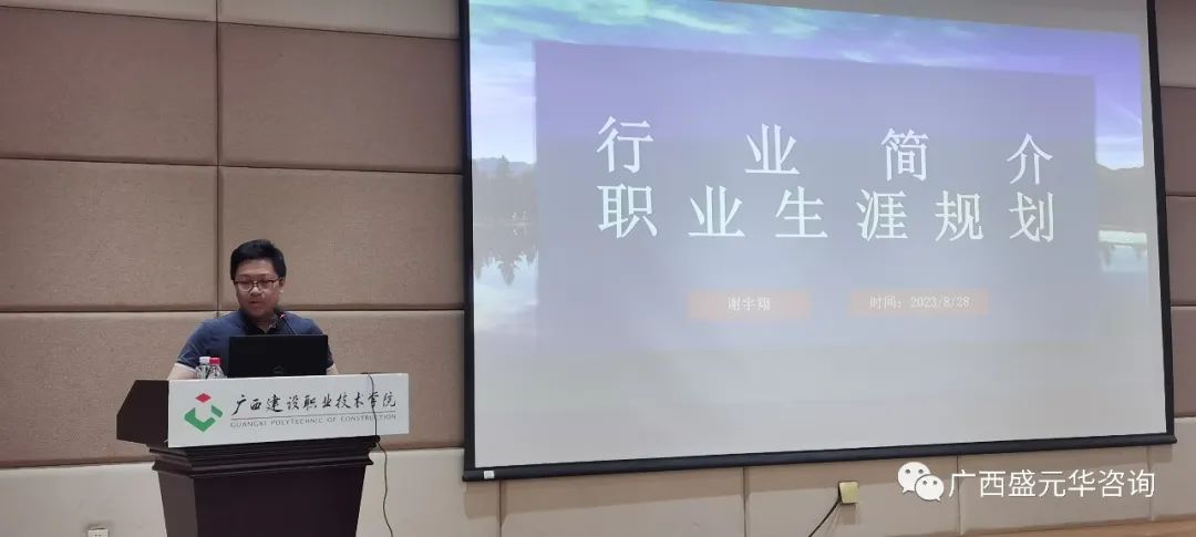 8月28日下午,受廣西建設(shè)職業(yè)技術(shù)學(xué)院管理工程學(xué)院邀約,廣西盛元華總經(jīng)理助理、總工程師謝宇翔出席參加了管理工程學(xué)院2023級造價班全體新生的開學(xué)第一課,并在課上向新生們做了關(guān)于職業(yè)培養(yǎng)的專業(yè)教育。